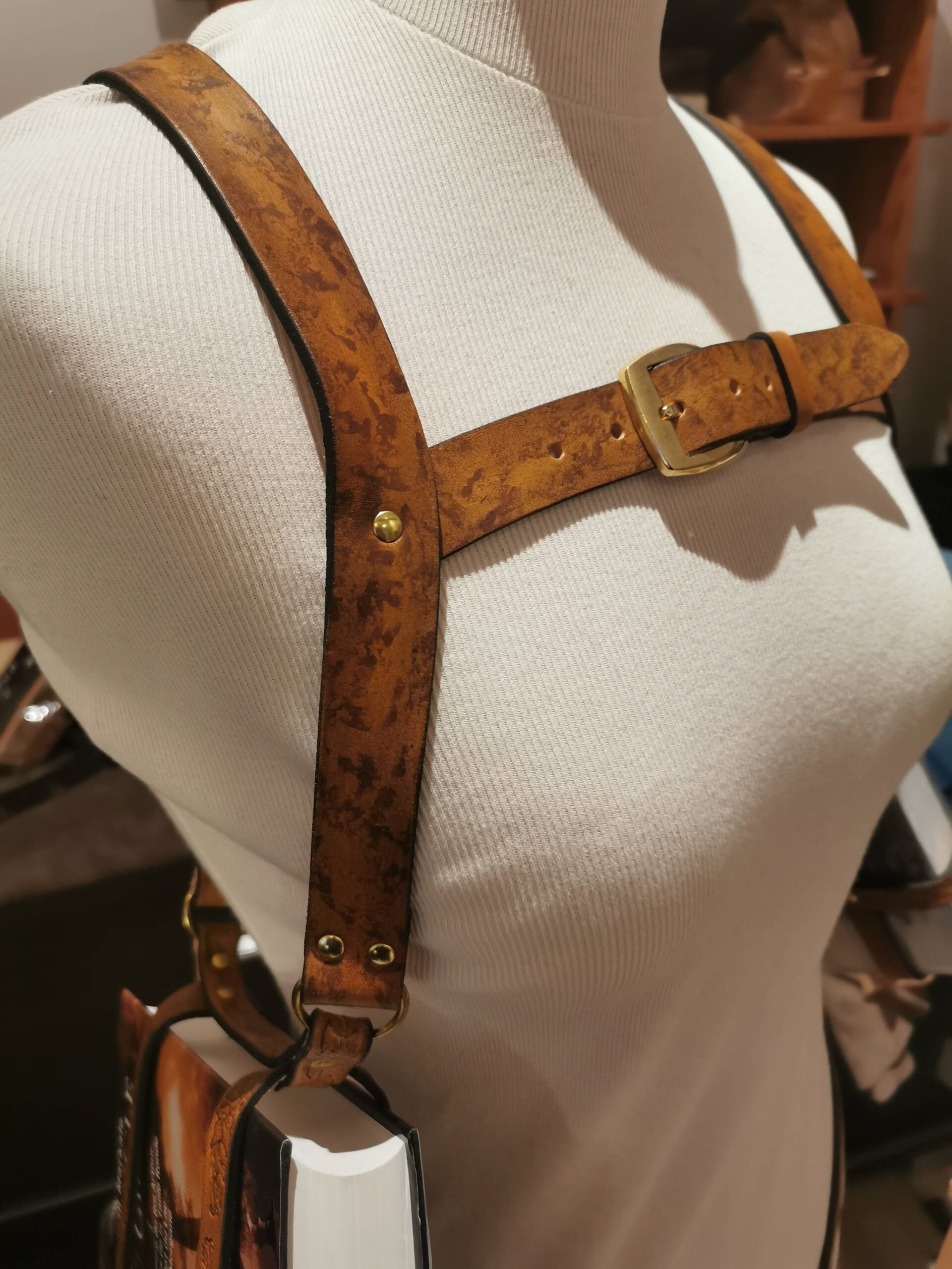 Idéal pour un costume, un shooting photo, un cabinet de curiosité ou juste pour le plaisir.Il tient grâce à trois points d’attache sur deux sangles et est très largement réglable.Ce modèle peut être décliné dans d’autre coloris ou être agrémenté de repoussage pour être encore plus original et unique.Pour commander votre modèle unique c’est par ici : Créations sur mesures.