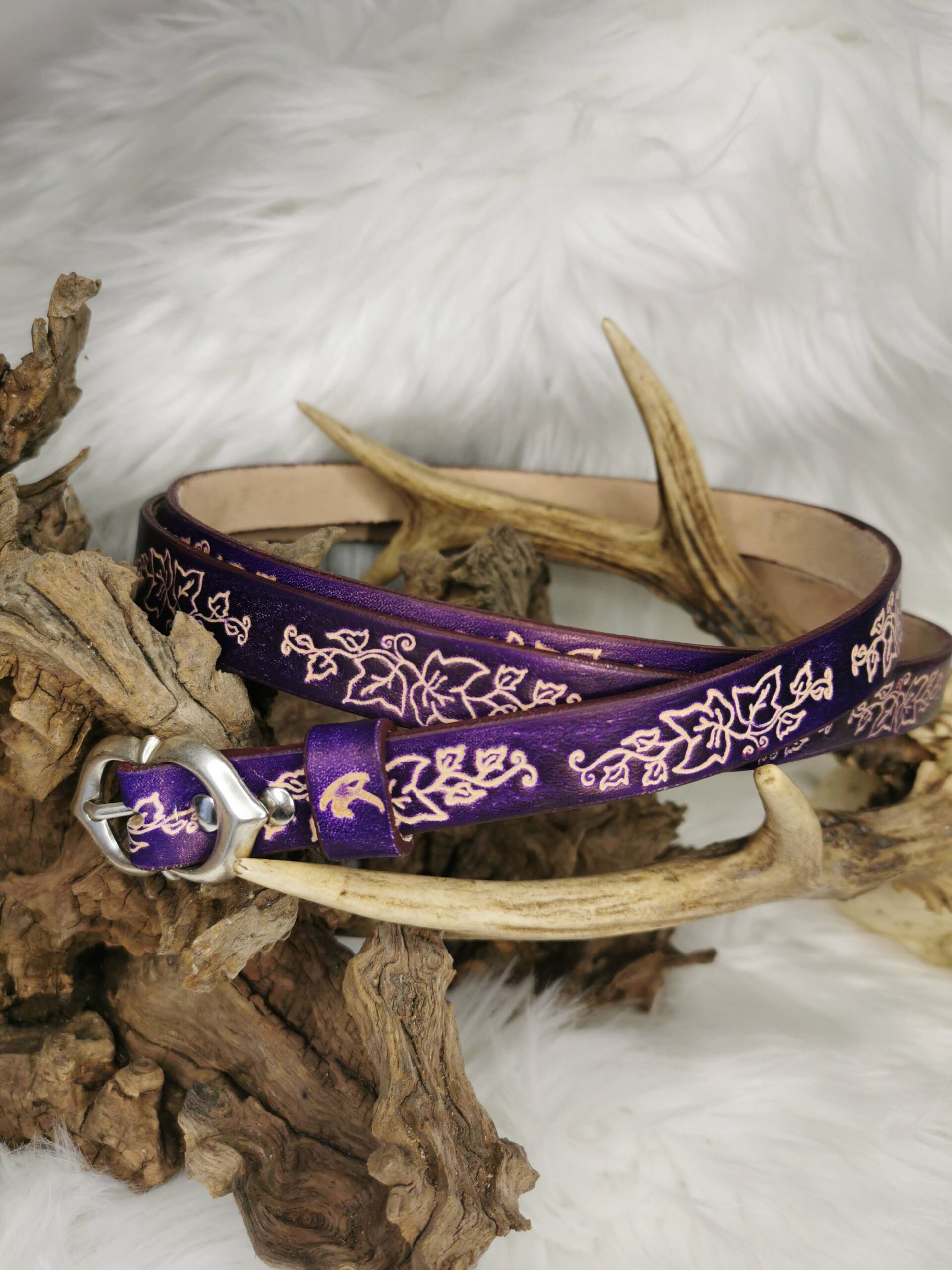 Ceinture en cuir de bovin à tannage végétal teinte à la main.