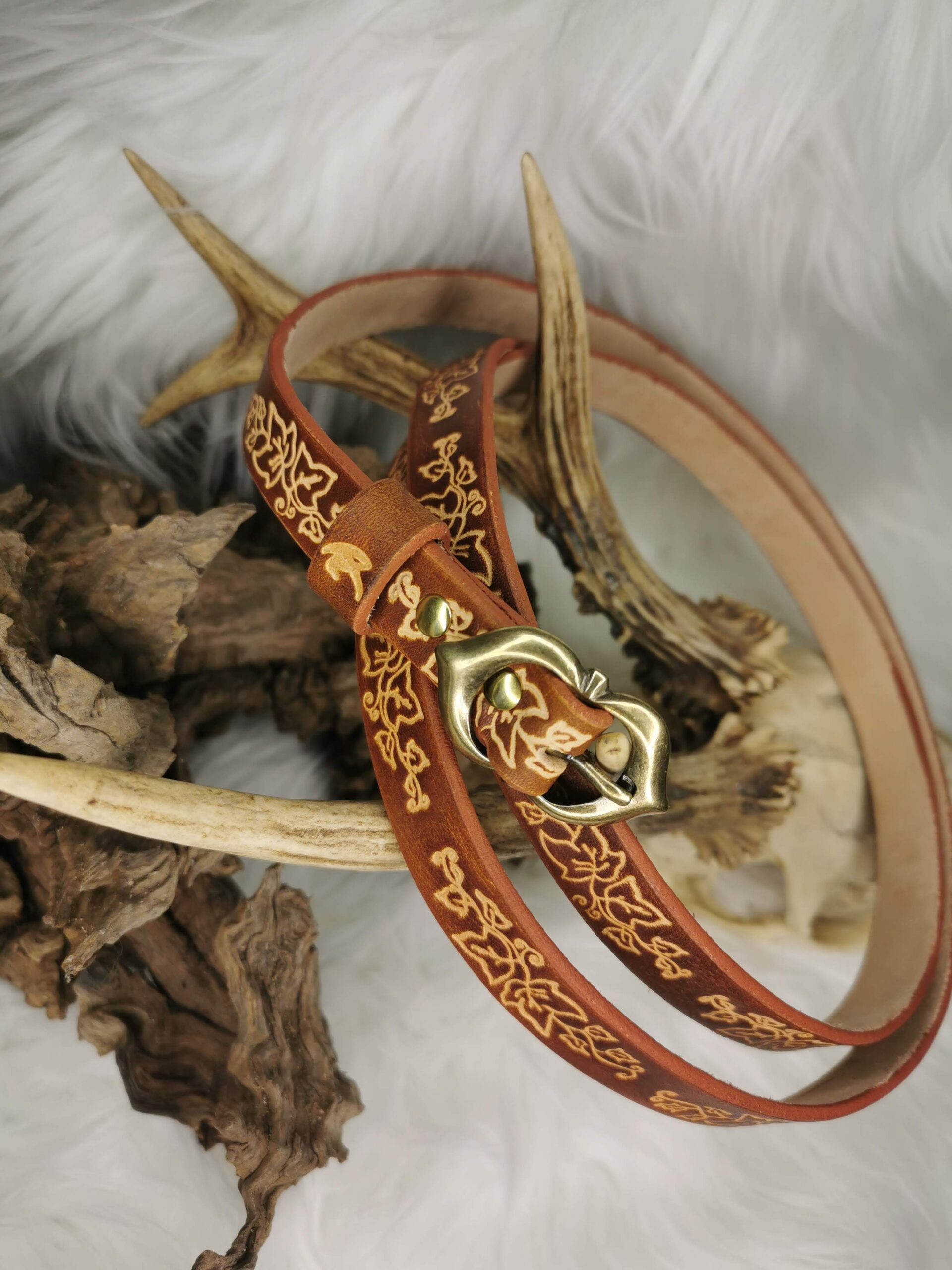 Ceinture en cuir de bovin à tannage végétal teinte à la main.