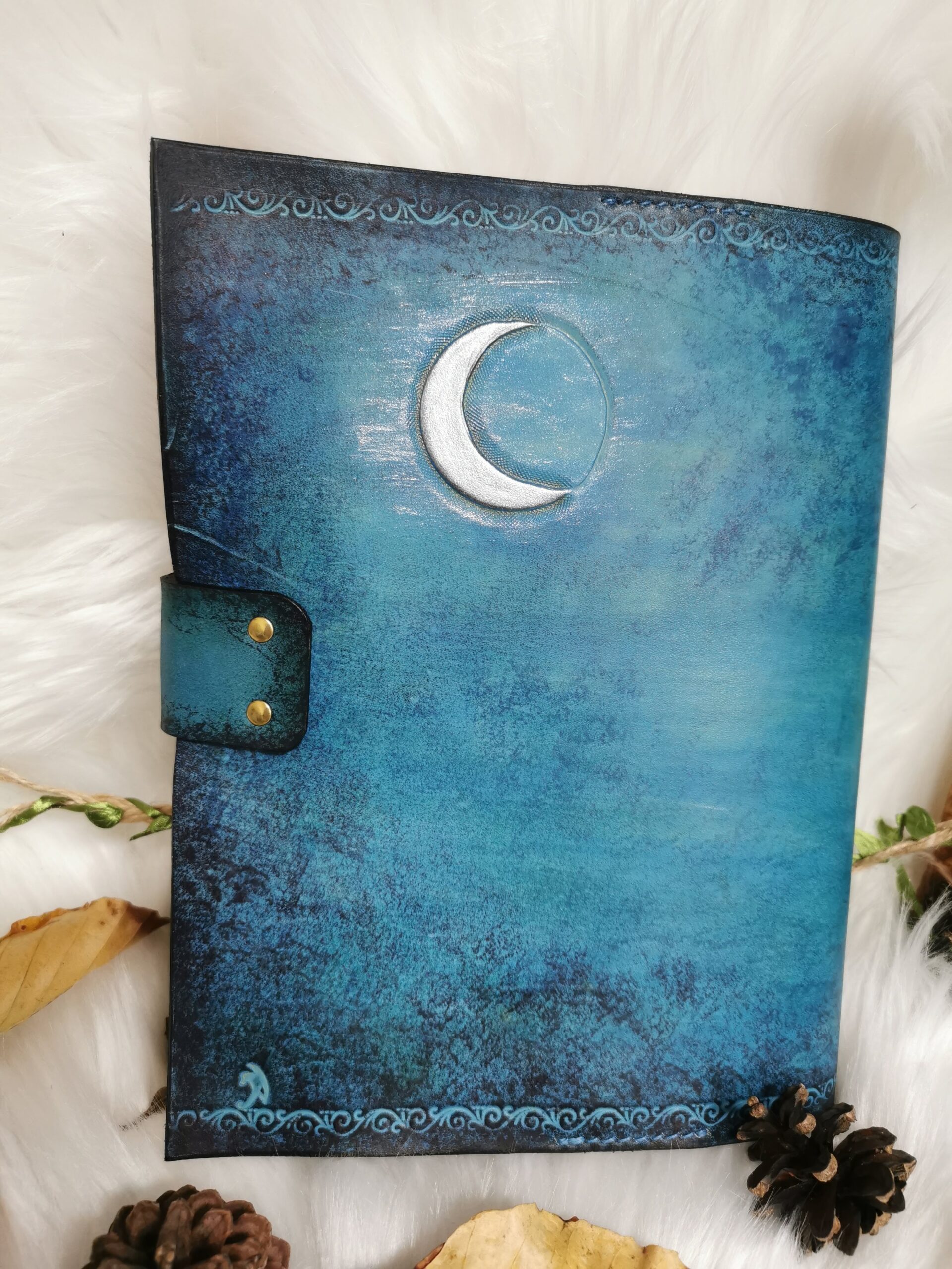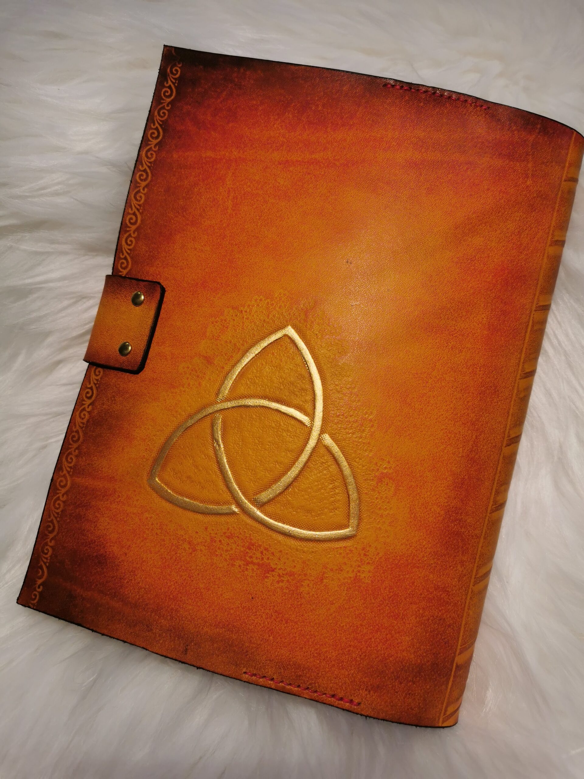 Couvre carnet en cuir de bovin à tannage végétal orné d’un sigil. Le sigil est un symbole dont le nom signifie « signature ». Il a pour principe d’être créé à partir d’une intention particulière, tout dans la bienveillance.