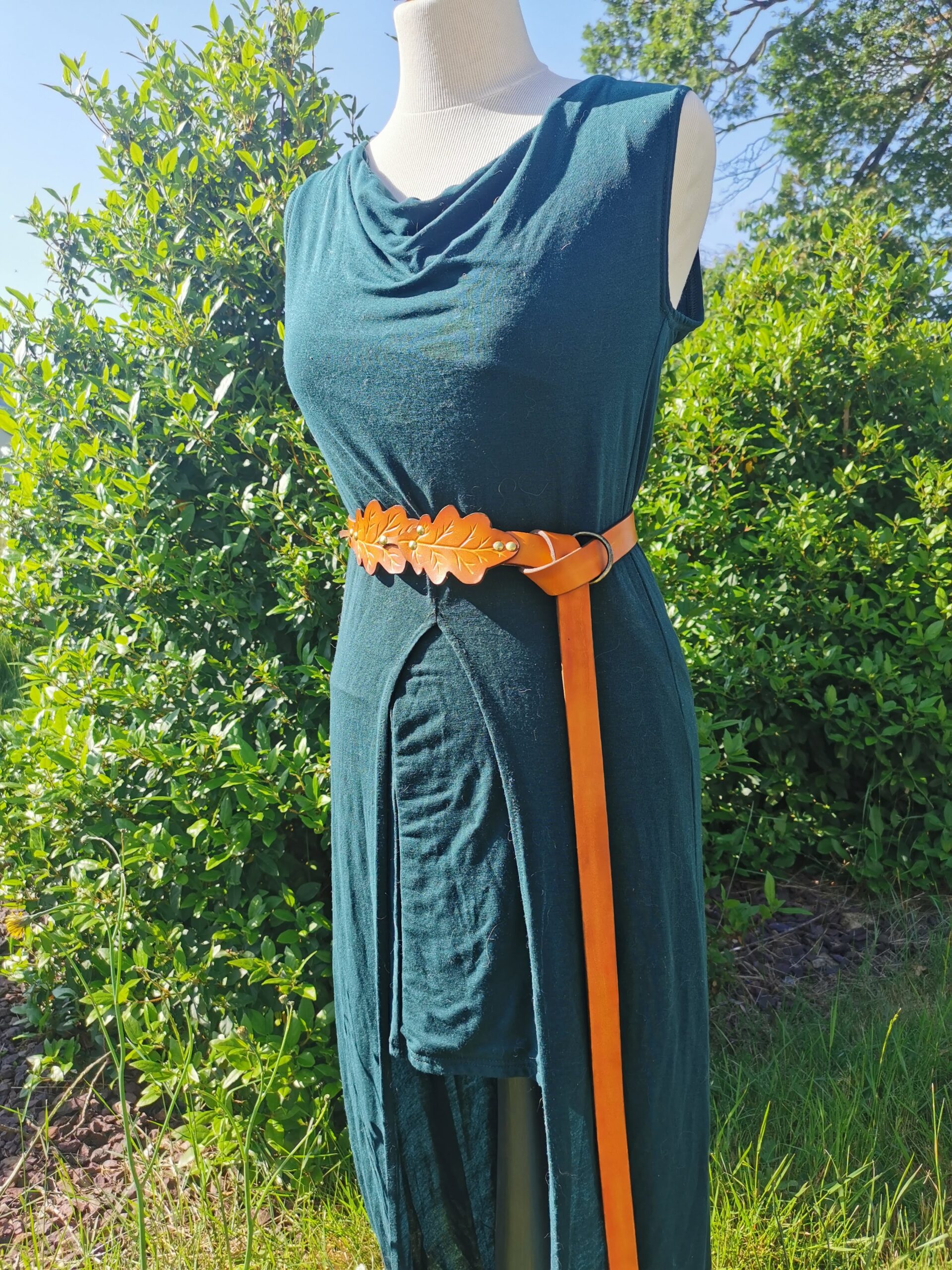Elégance et originale, cette ceinture artisanale sans boucle, dotée d’un anneau pour la fixer grâce à un nœud permet de s’adapter à toutes les tailles sans trous. Ornée de feuilles façonnées à la main cette ceinture unique allie fonctionnalité et esthétique pour sublimer toutes vos tenues.